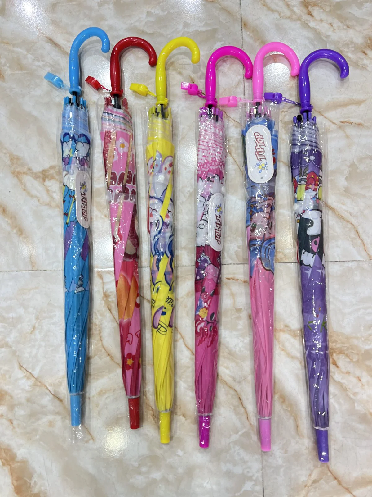 چتر بچه گانه با شخصیت کارتونی غیر قابل جمع شدن است. این چتر کودکانه دارای رنگ بندی متفاوتی است. طیف رنگهای دلنشین آن از آبی،صورتی،بنفش،دخترک صورتی،زرد و قرمز است. ظرفیت این چتر 8 ضلعی کوچک یک نفره است. جنس این چتر 8 فنره از پارچه برزنت درجه 1 و ضد آب است. بیشترین ارتفاع ستون فلزی همراه با دسته عصایی آن در حالت باز 61 سانتی متر است. حداقل و حداکثر طول چتر تک نفره بچه گانه در حالت بسته شده 67 سانتی متر است. بیشترین قطر پارچه آن 87 سانتی متر است. پس به راحتی کاربر را از قطرات آب حفاظت میکند.