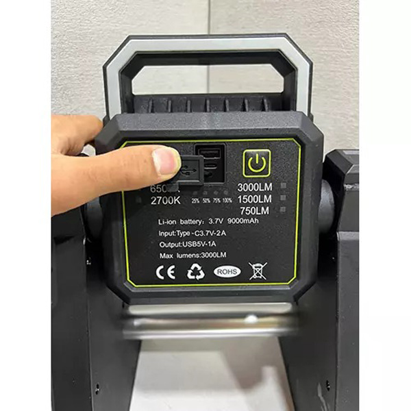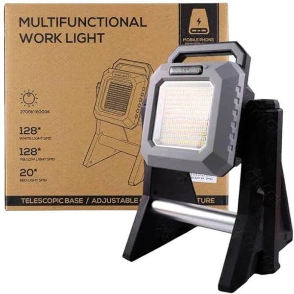 | سایر ویژگی | دارای پایه با قابلیت چرخش 360 در جه ای، پاوربانک، نمایشگر شارژ باتری، تنظیم شدت نور به میزان مورد نیاز و دلخواه، تنظیم دمای رنگ، استفاده به عنوان رومیزی، قابل نصبب بر روی ستون، دیوار و پایه،قابل حمل و استفاده به عنوان چراغ قوه توسط دسته مخصوص حمل دستی، قابل آویزان شدن |