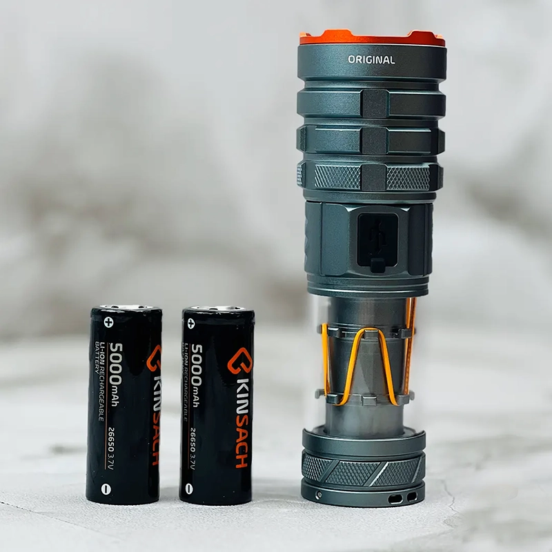 با چراغ قوه فانوسی KS-580 کینساچ، هیچ محدودیتی برای کشف و ماجراجویی و نورپردازی در تاریکی مطلق و شب وجود ندارد. همراه چراغ قوه چندمنظوره کینساچ KS-580 یک بند پارچه ای محکم در انتها قرار دارد که از استحکام بالائی برخوردار است. برای حمل و نصب دراز مدت می توانید از این بند نگهداری که همراه چراغ قوه است، استفاده کنید. سایر وسایل جانبی چراغ قوه شامل سیم شارژر TYPE C، کله یا آداپتور اورجینال کینساچ 5 ولتی و یک باتری یدکی 5000 میلی آمپری برند کینساچ سایز 26650 و یک کیف برزنتی با مارک کینساچ است که در هنگام خرید به خریداران محترم تحویل داده می شود. این چراغ قوه پرنور و خوش فرم در انتها یک جای پیچ دارد که جهت نصب بر روی پایه و یا آویزان نمودن در سقف چادر و غیره می باشد.