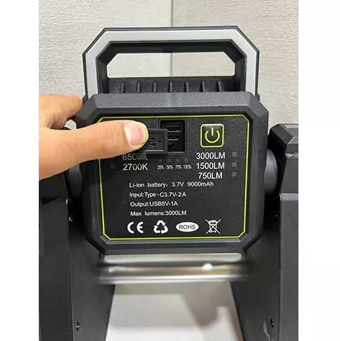 | سایر ویژگی | دارای پایه با قابلیت چرخش 360 در جه ای، پاوربانک، نمایشگر شارژ باتری، تنظیم شدت نور به میزان مورد نیاز و دلخواه، تنظیم دمای رنگ، استفاده به عنوان رومیزی، قابل نصبب بر روی ستون، دیوار و پایه،قابل حمل و استفاده به عنوان چراغ قوه توسط دسته مخصوص حمل دستی، قابل آویزان شدن |