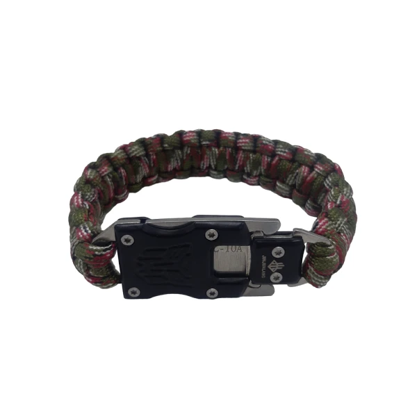 دست بند نجات پاراکورد مدل tactical دارای وسایل ضروری برای بقا در طبیعت است. به وسیلهی این دستبند میتوانید به راحتی از ارتفاع پایین بیایید، ماهیگیری انجام دهید و انواع کار انجام دهید. اگر به شکل دستبند پاراکورد و نجات خوب نگاه کنید، متوجه میشوید که مانند یک طناب است. جالب است بدانید که طناب پاراکورد برای چتربازی هم مورد استفاده قرار میگیرد. این طناب نجات از مقاومت و استحکام بسیار بالایی برخوردار است. مقاومت بالای این طناب به میزانی است که میتوانید یک وزنهی 250 کیلوگرمی را بدون نگرانی به آن متصل نمایید. از طناب پاراکورد علاوه بر چتربازی میتوان در ماهیگیری، بند آوردن خونریزی، فرود آمدن از ارتفاع، طناب نگهدارندهی چادر، درست کردن پناهگاه و… نیز استفاده کرد.