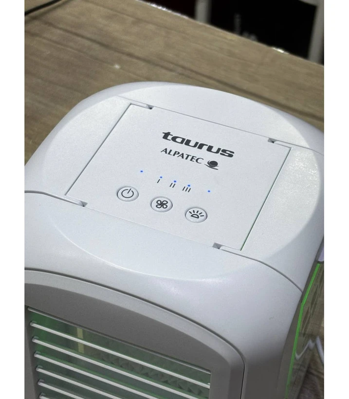 کولر آبی شارژی رومیزی تاوروس اسپانیا TAURUS ALPATEC طراحی کوچکی به ابعاد 16x16x18 سانتیمتر دارد. وزن این کولر سبک و قابل حمل تنها 757 گرم است. این کولر آبی رومیزی با قابلیت شارژ توسط کابل USB عملکردی ایده آل ارائه می دهد. ولتاژ ورودی برق آن 5 ولت است. شدت جریان وروردی آن برابر 1 آمپر است. توان مصرفی این مینی کولر شارژی رومیزی تنها 5 وات است. کافی است که کولر را از طریق کابلهای شارژ معمولی به یک پاوربانک یا لپ تاپ متصل سازید تا به خوبی کار کند. پس می توان گفت که از این رو یک گزینه بسیار عالی برای دفاتر و ادارات، اتاق بچه ها، داخل چادر و ماشین و برای استفاده در هر مکانی بدون نیاز به منبع تغذیه مستقیم است. زیرا میتوانید آن را به هر ورودی USB مانند لپتاپ، کامپیوتر یا پاوربانک متصل کنید و از آن براحتی استفاده نمایید.